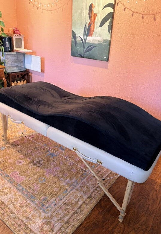This is an awesome add to our space. So very comfortable and fits the table well. I would suggest adding a plastic cover if you plan to do any body work, but it’s perfect for facials!