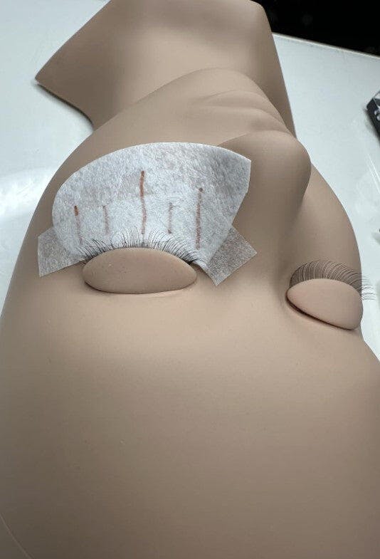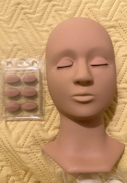 Good for practicing, I like that the eye lids are removable and it came with extras. The texture of the "skin" is a good texture to practice on and the already applied lashes are thin but full allowing you to see your work. I recommend it, I used it for practicing lash clusters