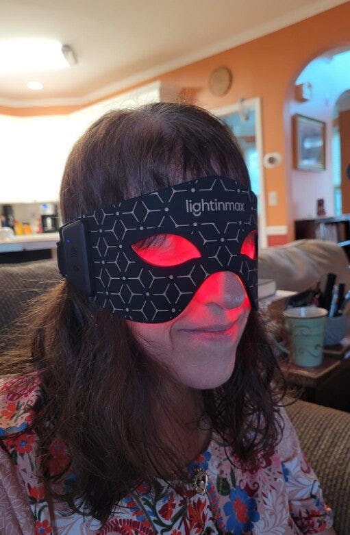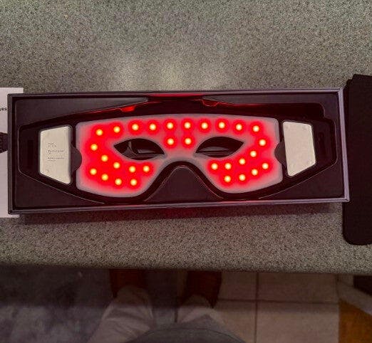 This red light therapy mask is targeted for the eye area. I have never used a red light mask before, but I know they are extremely popular. I have only seen ones that cover the entire face. It seems like it would be worth getting a mask that covers more surface area and therefore does more work for you, but this one is priced a lot less than full-face masks, so if you are most concerned about the eye area and not wanting to spend more money than necessary, this might be a good option for you. it looks and feels much nicer than I was expecting, and it is surprisingly comfortable. It fits securely around my head.