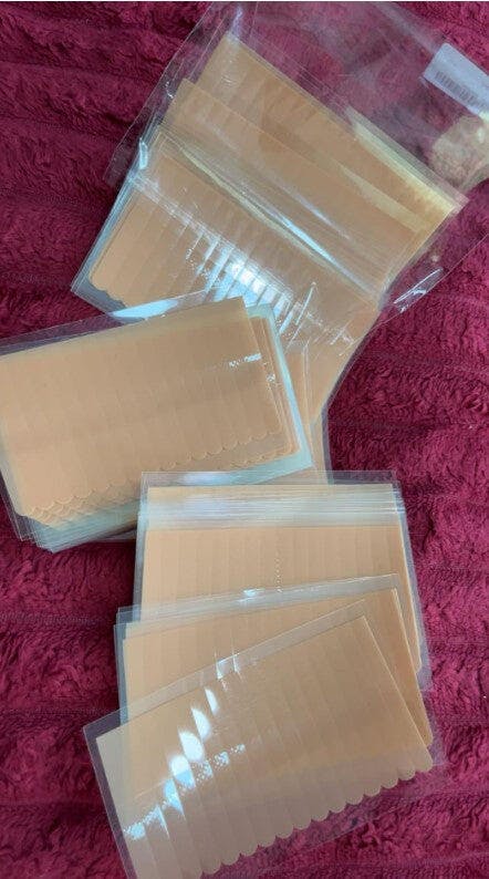 Ok I found these and use them for a totally different reason. My sister has Myasthenia Gravis. Her eye lids get really weak and it hinders her vision. She has used tape in the past to help keep them open. But it would rip off her eye brows. These don’t!! They hold her eyelids open just enough to Martin vision. They stick well but don’t hurt coming off. The color is a good skin tone so they aren’t very noticeable. Great quality!