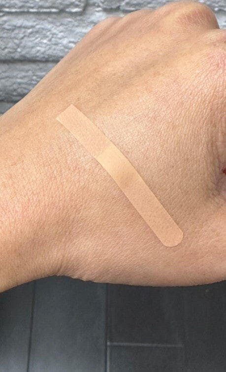 The material feels like a bandage texture. The middle part of the strip is not sticky. Good for lifting the eyelid without pulling the brows. Sticky enough and skin-friendly. Won't hurt when you remove it.